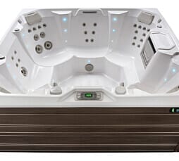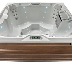 The multi-colour internal LED lighting changes the colour of your hot tub water at night. The lights are located to accent the contours of the spa shell. Light colour and dim can be controlled easily through the LCD control panel.